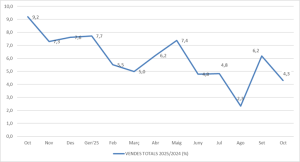 Gràfic comparatiu de vendes octubre 2025 versus mateix mes any anterior