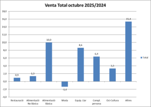 Gràfic que mostra el creixement de les vendes per categories d’activitat durant l’octubre de 2025 vs. 2024