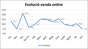 La mitjana de creixement de la venda online se situa en un 4,9% a l’octubre en comparació al mateix mes de 2024